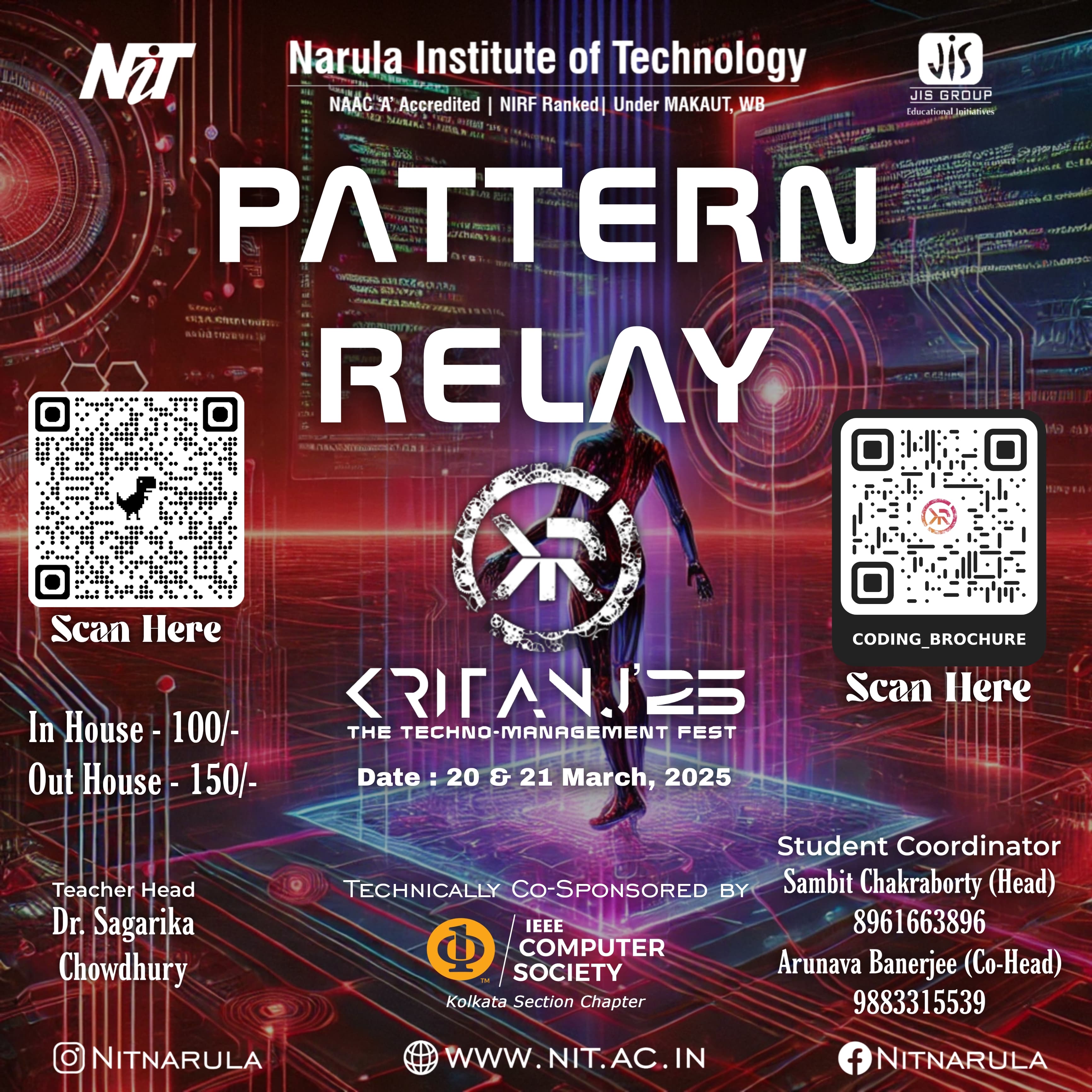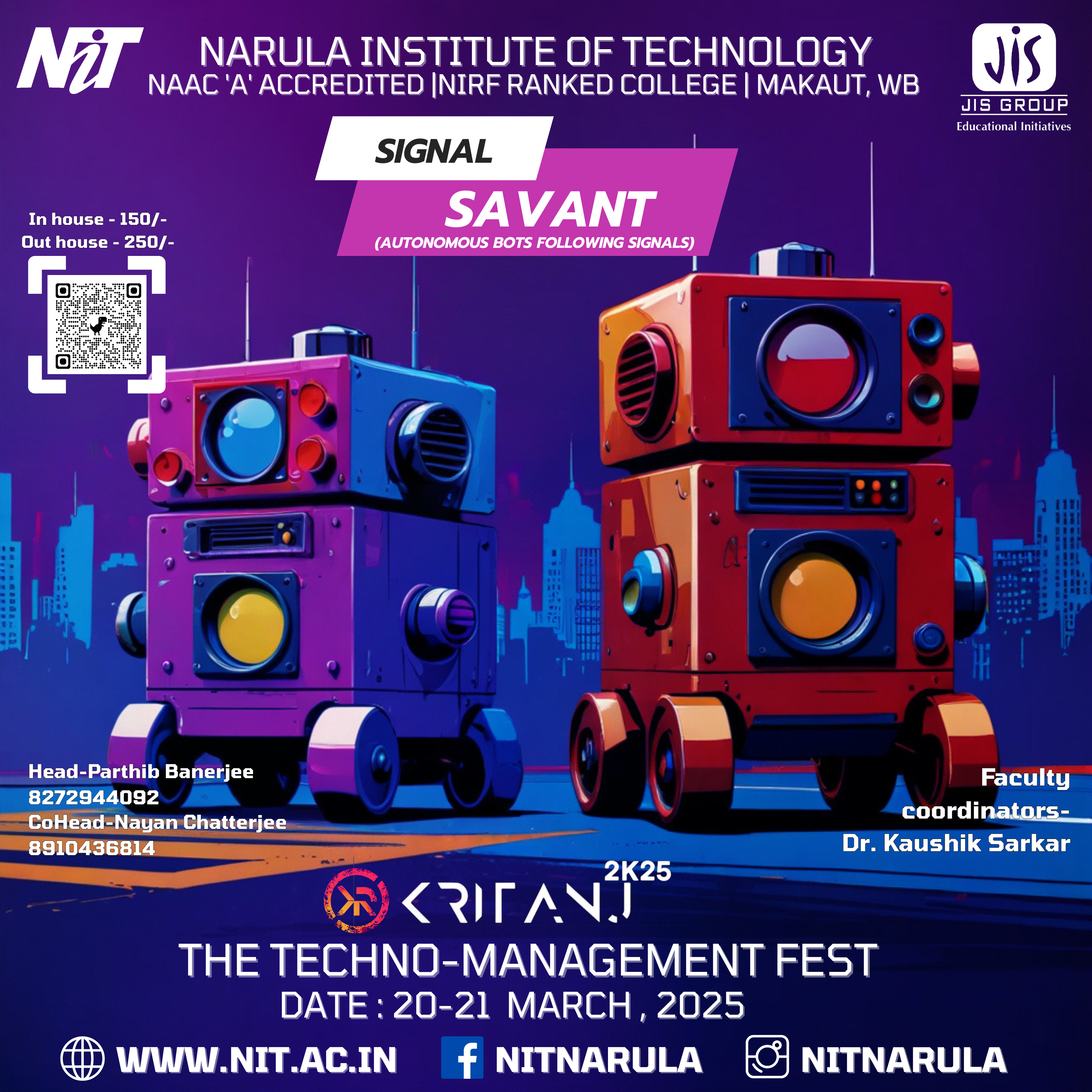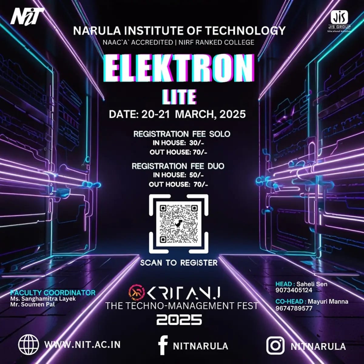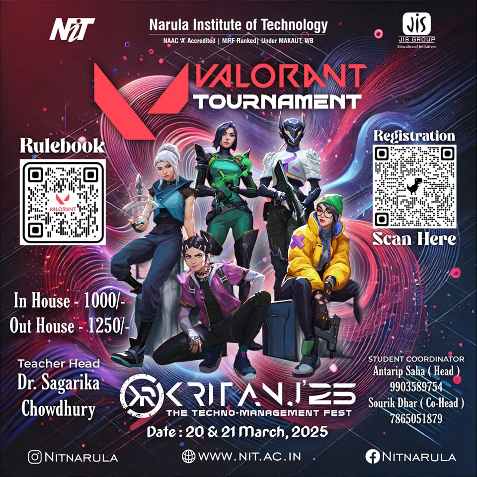 The annual tech fest of Narula Institute of Technology. Featuring hackathons, coding contests, robotics challenges, civil creations, workshops, tech exhibitions, and many more!