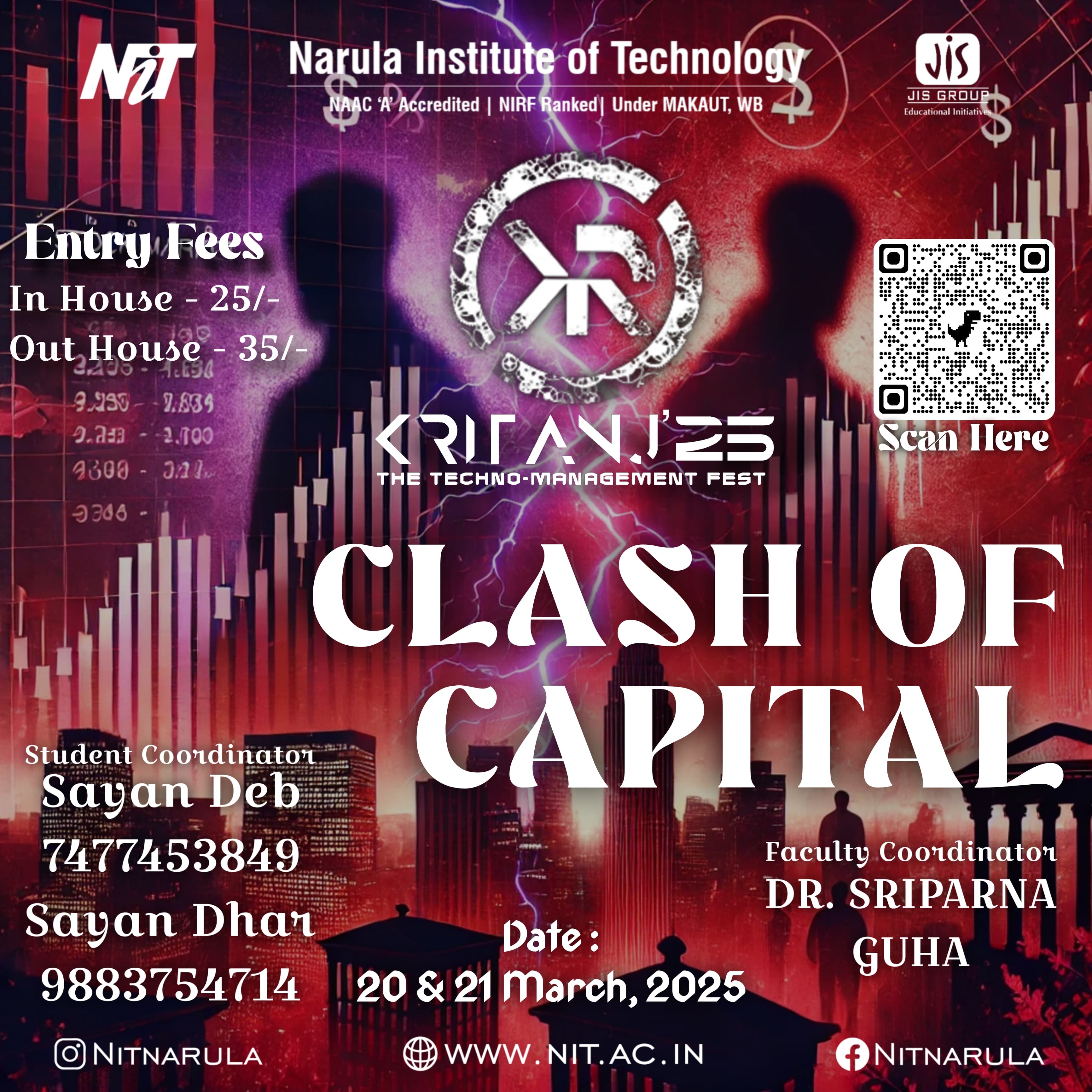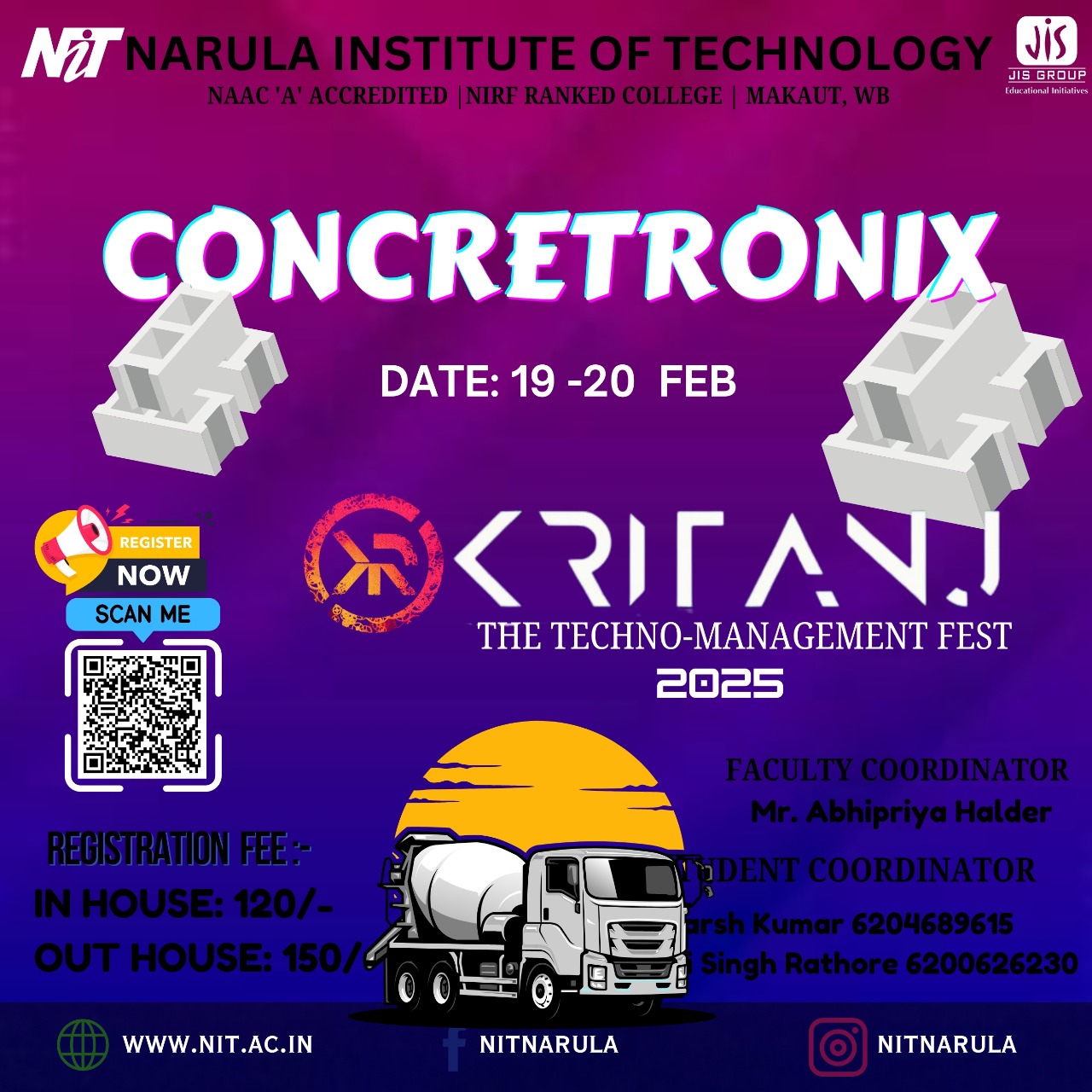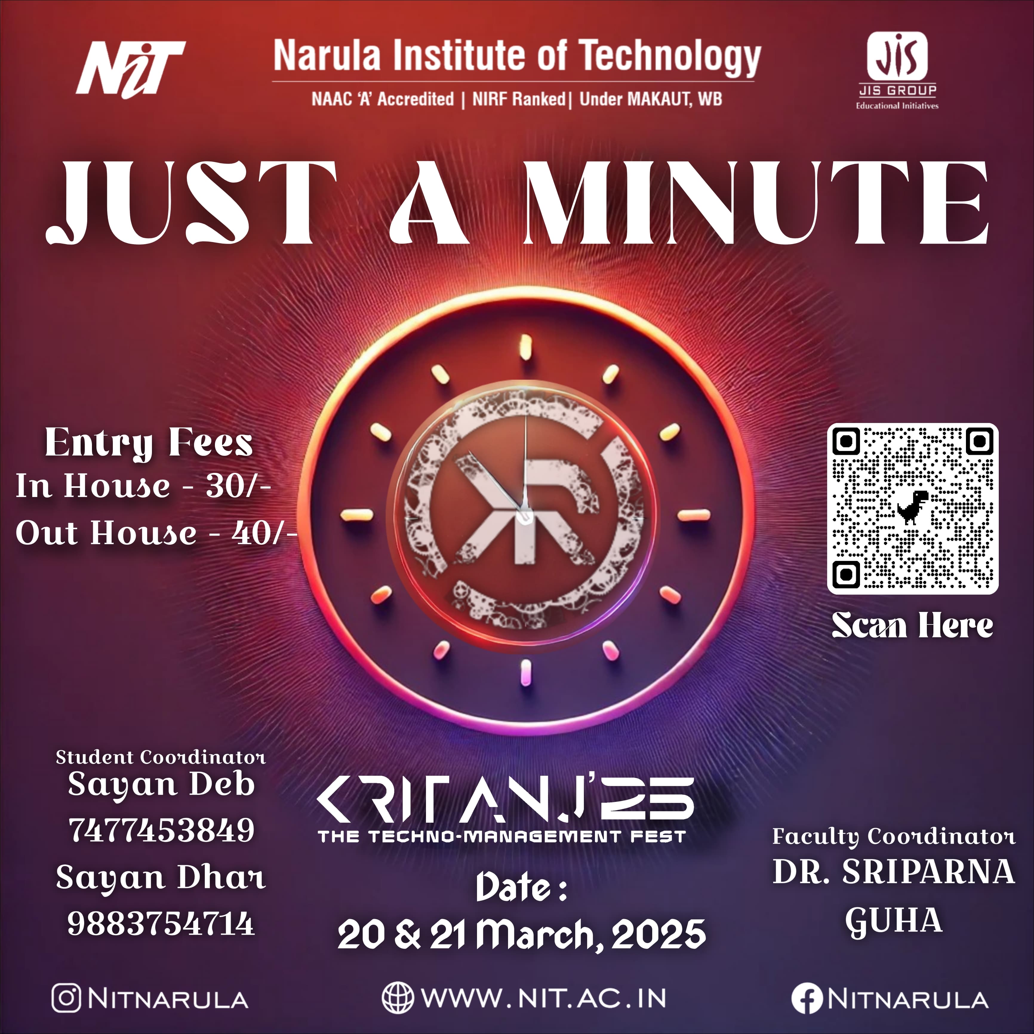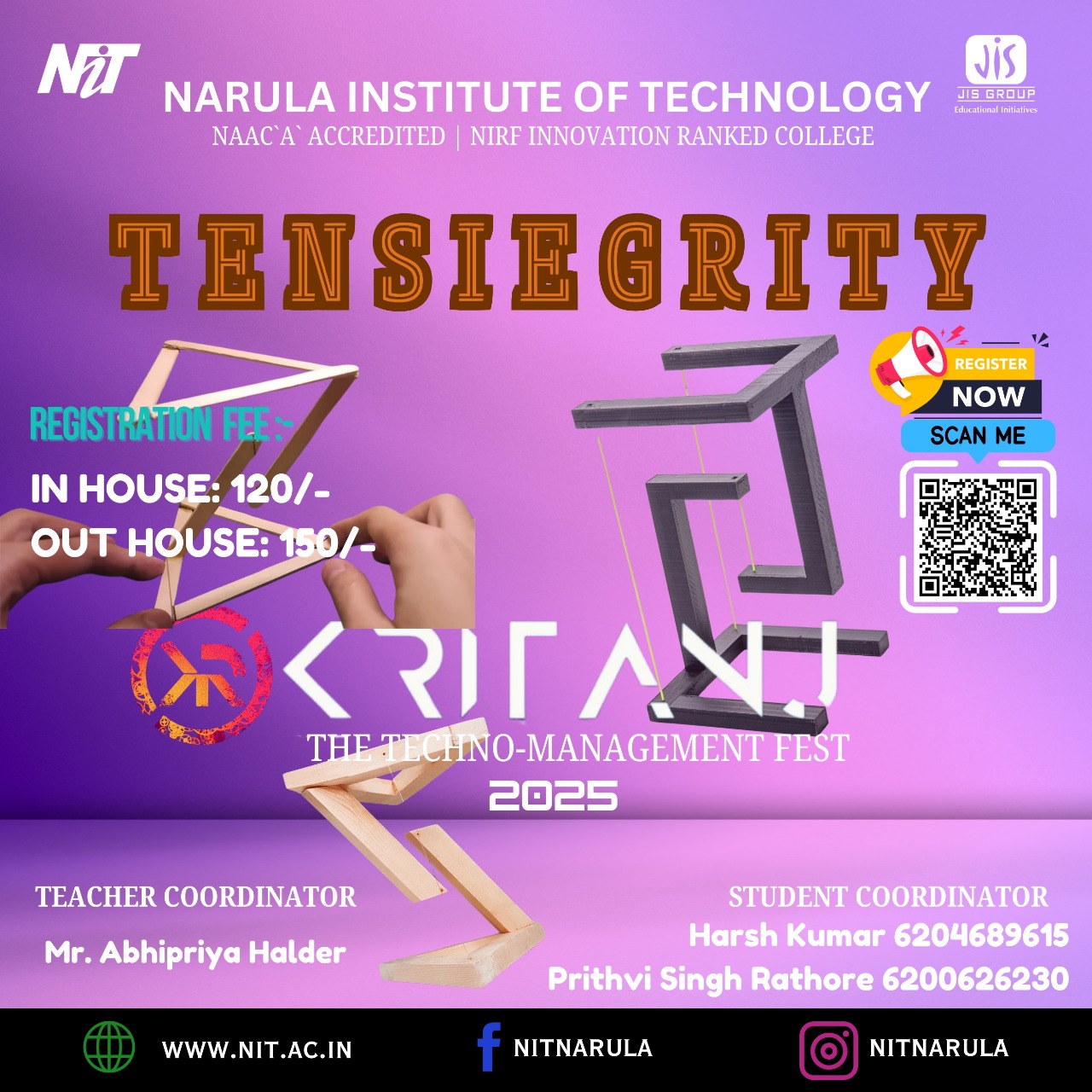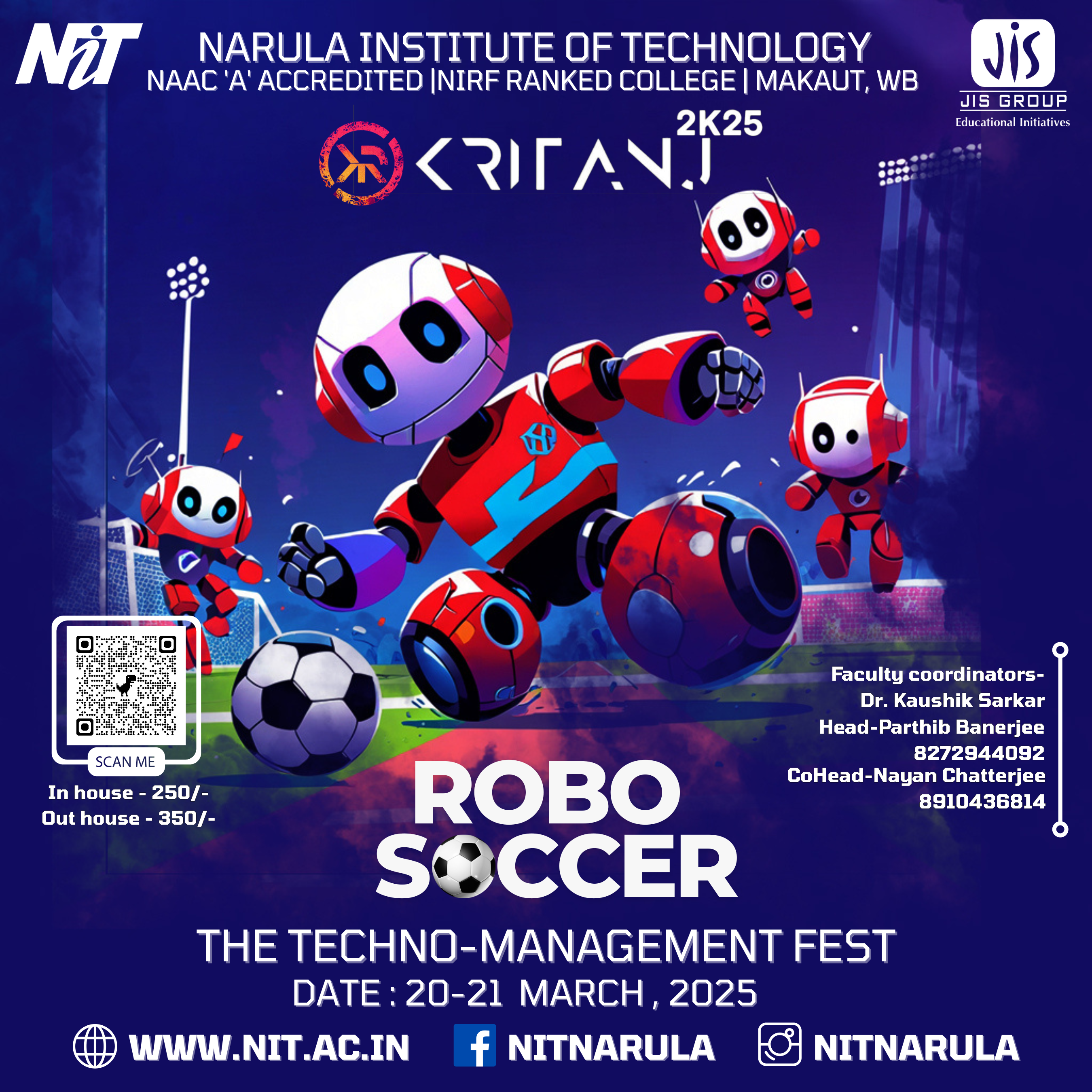 Kritanj Is The Annual Two-Day Tech Fest of Narula Institute of Technology, Bringing Together Innovation, Technology, And Creativity. Held from 20th - 21st March 2025, Kritanj serves as a platform for students to compete, collaborate, and create. The Name Kritanj is Derived From "Kriti" (Creation) And "Anj" (Offering), Symbolizing The Power Of Idea Turning Into Reality.